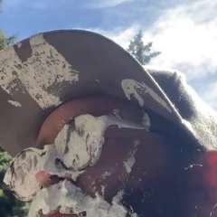 JustJade was surprised by luvs2pie with a big sloppy cream pie to the face